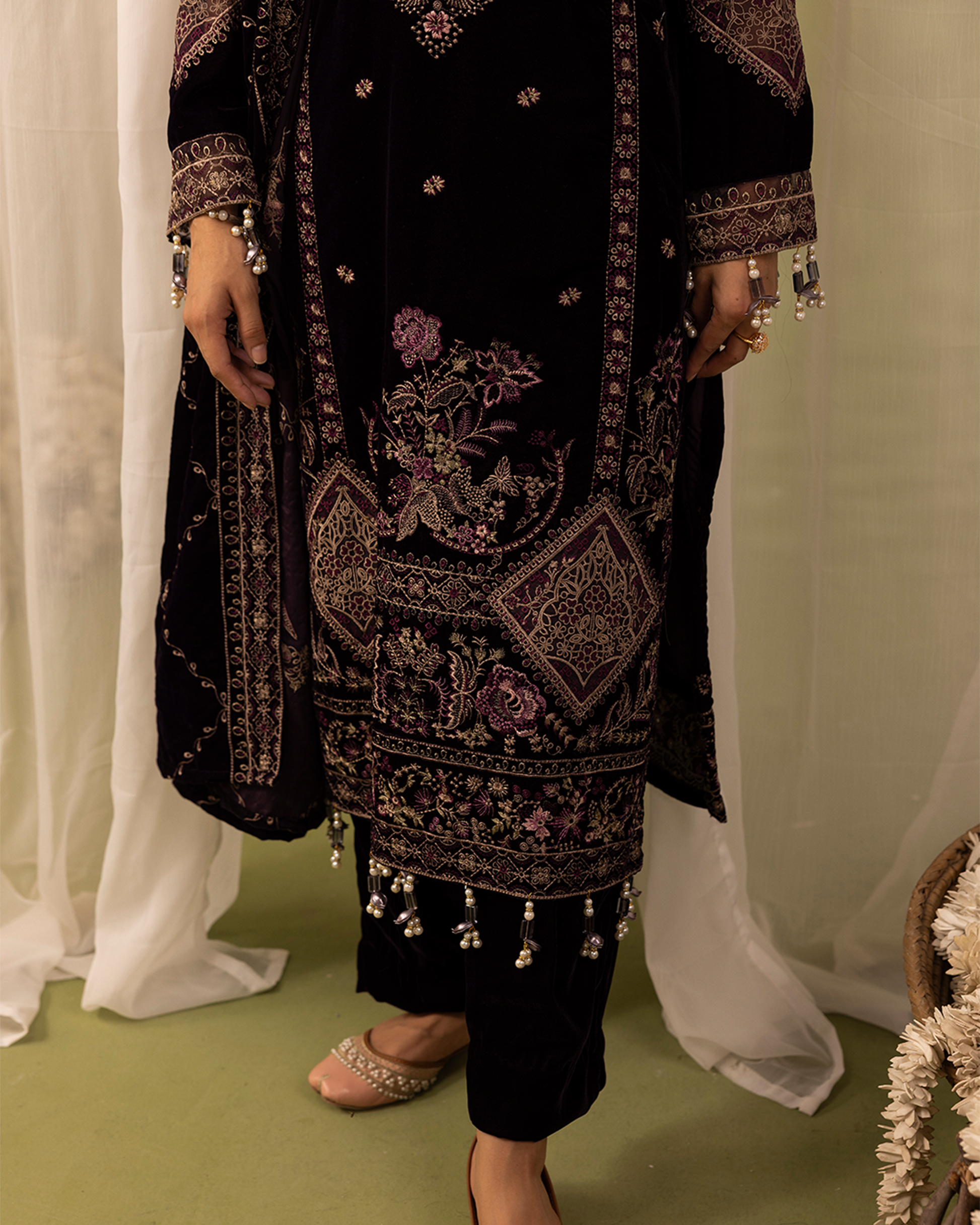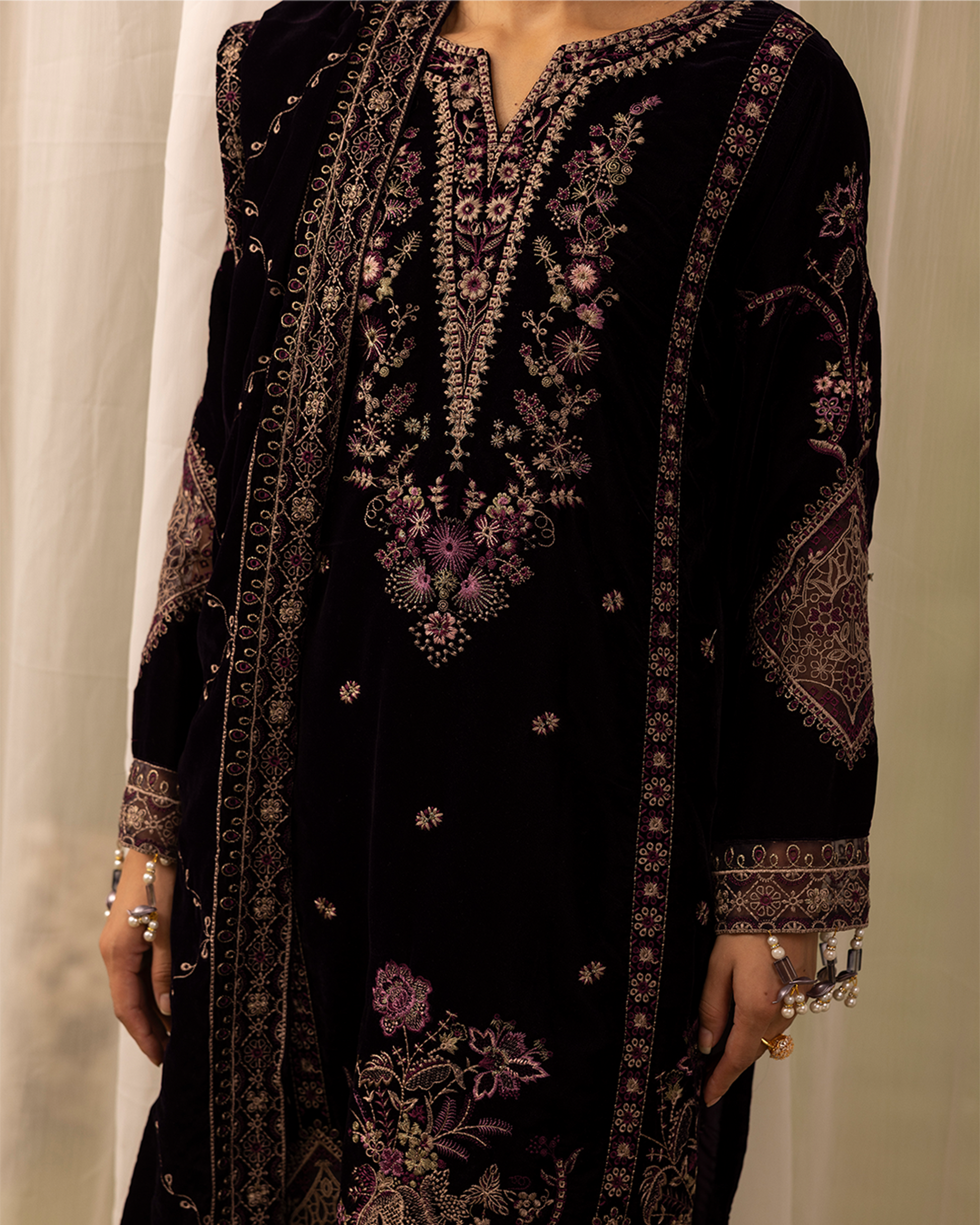 Emb Velvet Shawl: 92 Inches