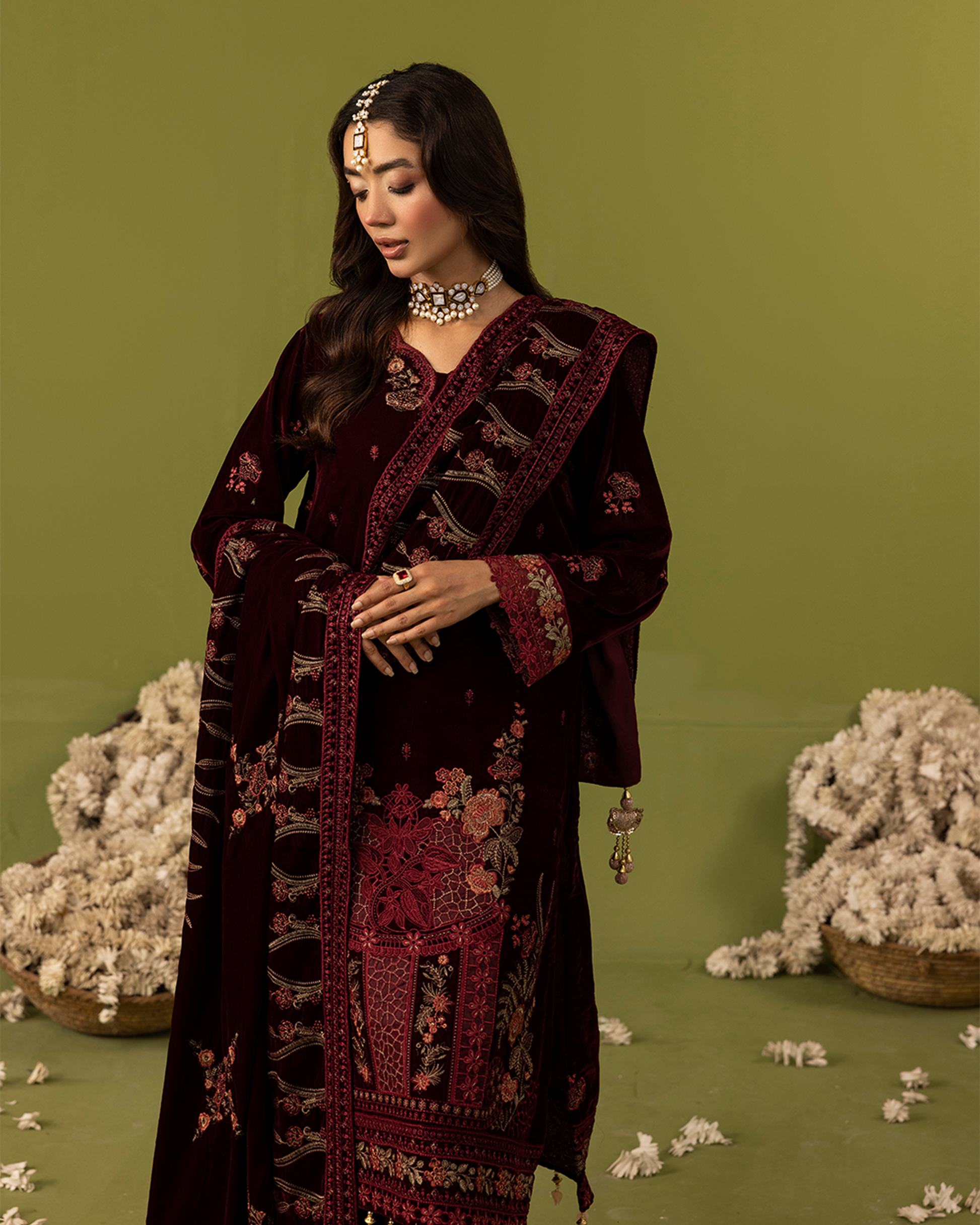Emb Velvet Shawl: 92 Inches