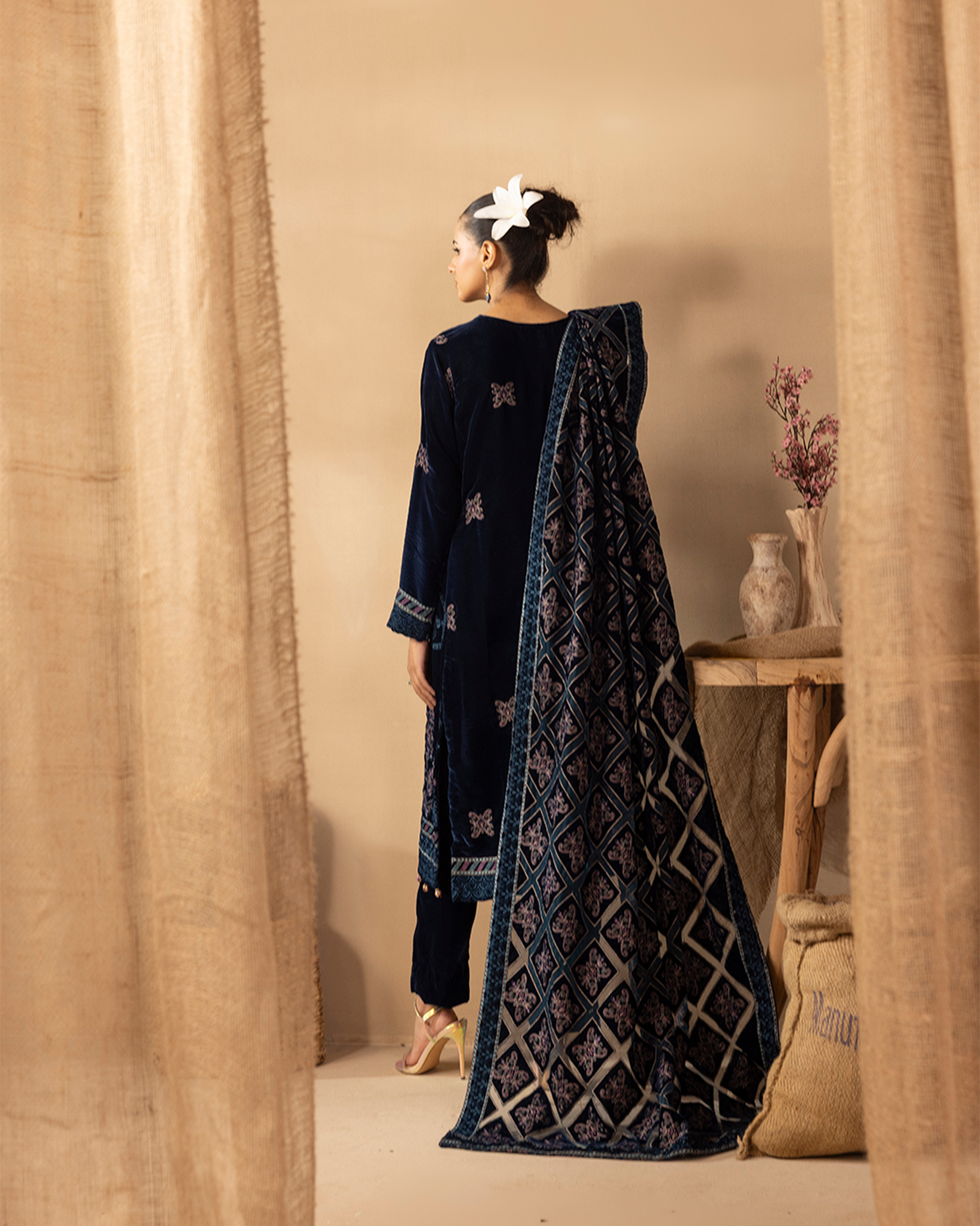 Musfirah Velvet Zinc Blue Unstitched VLT-UN-006